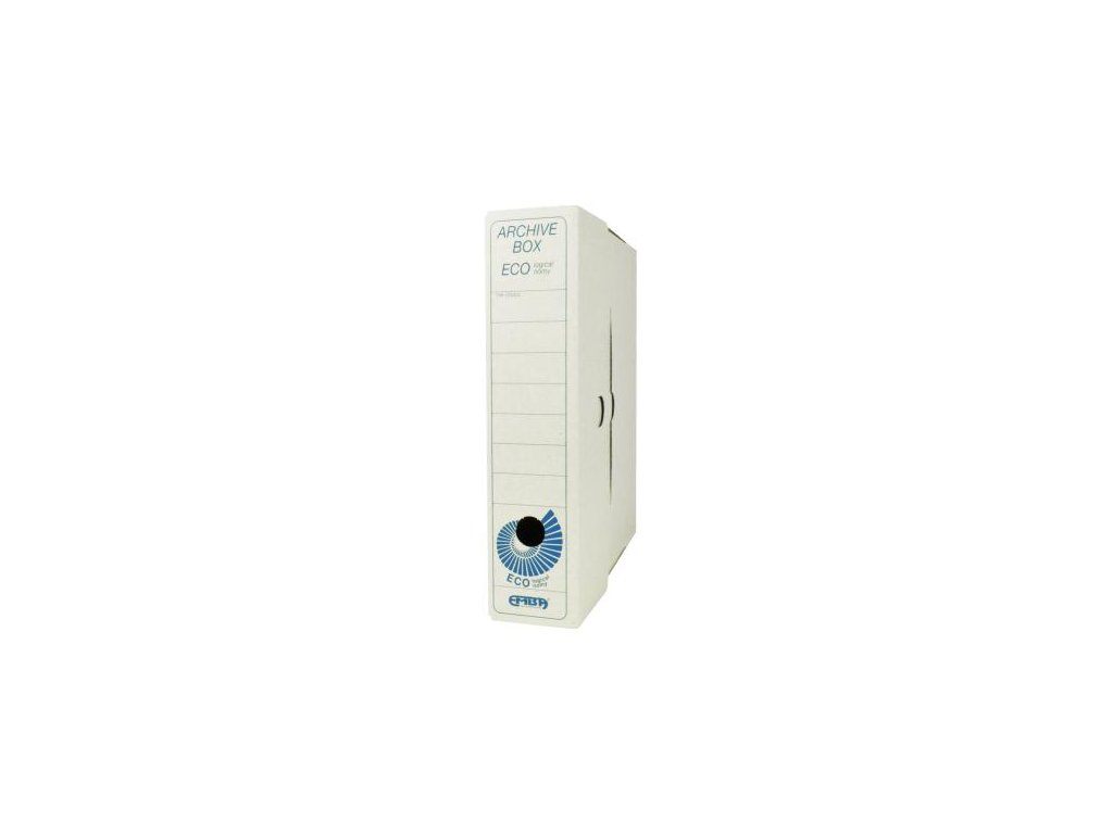 Archívny box ECO A4 sa používa pri rozdelení agendy, účtovných rokov alebo ako firemná farba. Vyrobený z lepenky hrúbky 0,9 mm. Možnosť prehľadného popisu, uloženie v troch polohách. Vhodný v kombinácii so skupinovým boxom - možnosť vložiť 5 boxov I/ 75/ ECO. Ekologicky šetrný výrobok z hladkej ručnej lepenky, 1 000 g/ m². Rozmery 75 × 325 × 240 mm. Dodávaný v rozloženom stave. Väčšie balenie 25 ks.Dodatočné parametre