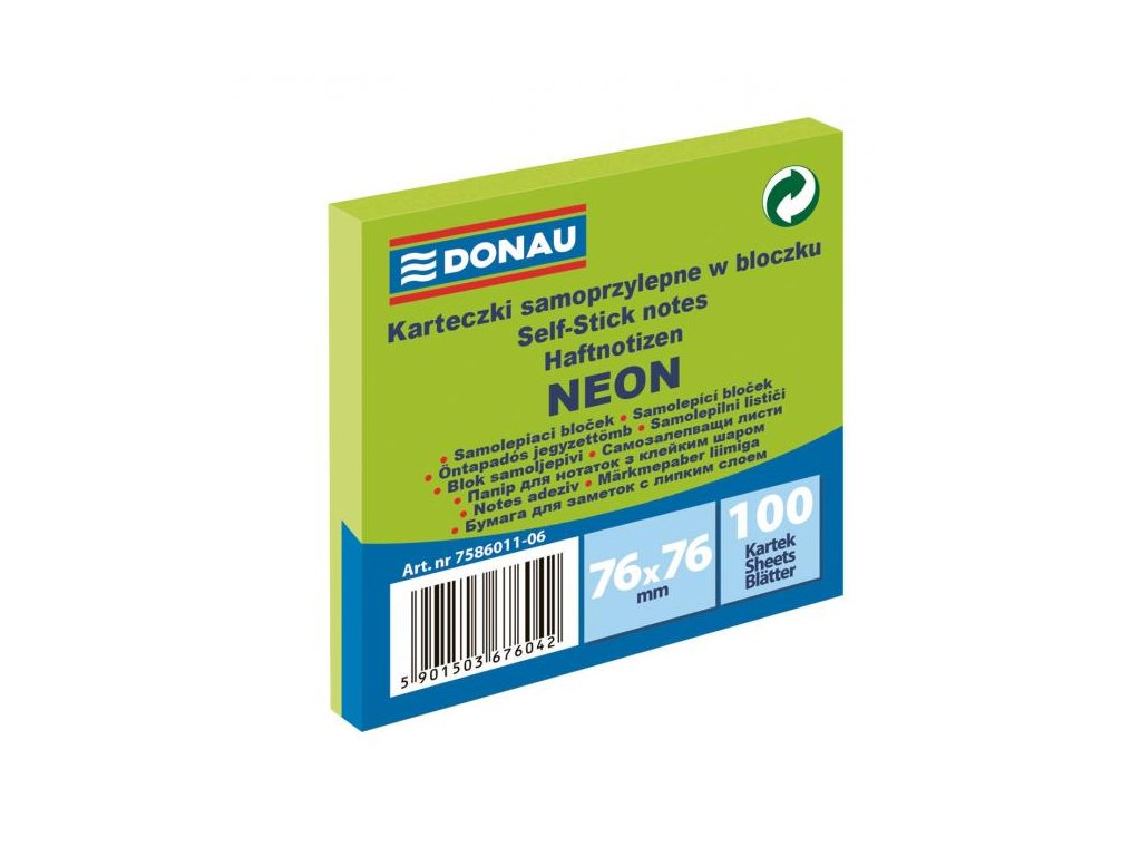 Bloček Donau neónový, 76 x 76 mm, zelený, 100 lístkov
