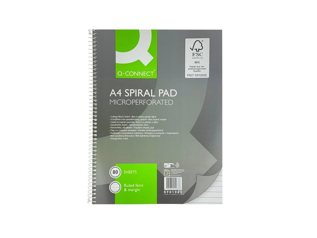 Blok College Q-Connect s kovovou špirálou formátu A4 s 80 listami, so špirálou na boku v atraktívnom vyhotovení. Väčšie balenie 10 ks.Úprava: linajková
