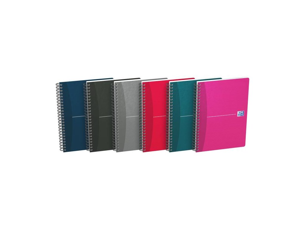 Blok s dvojitou špirálou, ktorá zabezpečuje otváranie strán o 360 °. Kompatibilný so SCRIBZEE. Listy s dierovaním, 6 mm linkovanie so záhlavím. Dosky z mäkkého, odolného laminovaného kartónu. Extra jemný a hladký papier Optik gramáže 90 g/m², u ktorého nedochádza k presakovaniu atramentu na druhú stranu. Vnútorné a vonkajšie okraje. Dodávané v mixe farieb. Formát A5. 90 listov. Úprava linajková.
