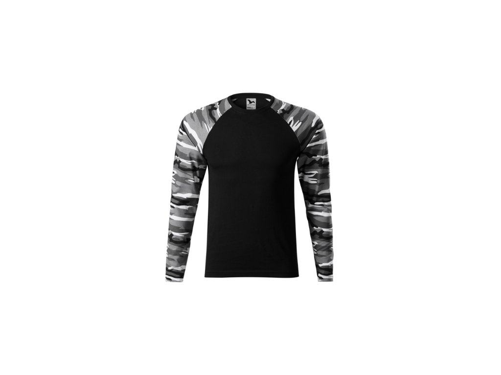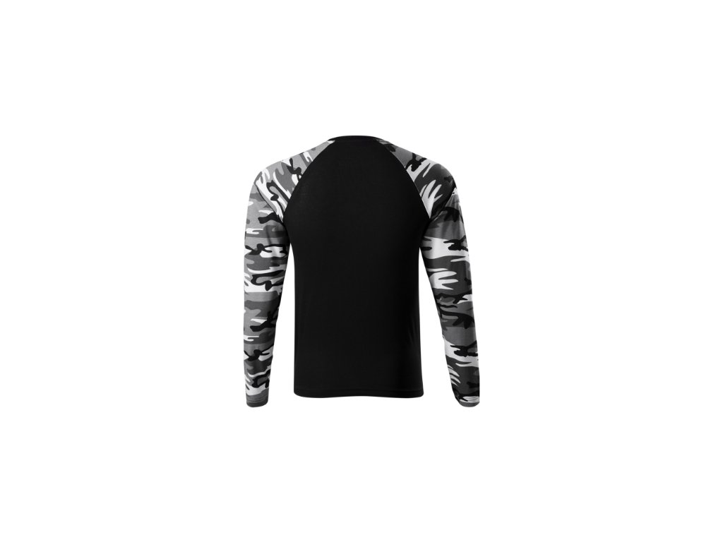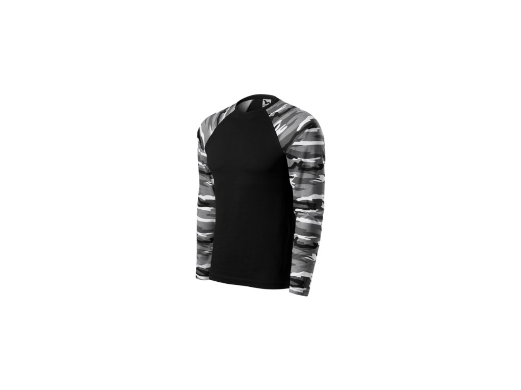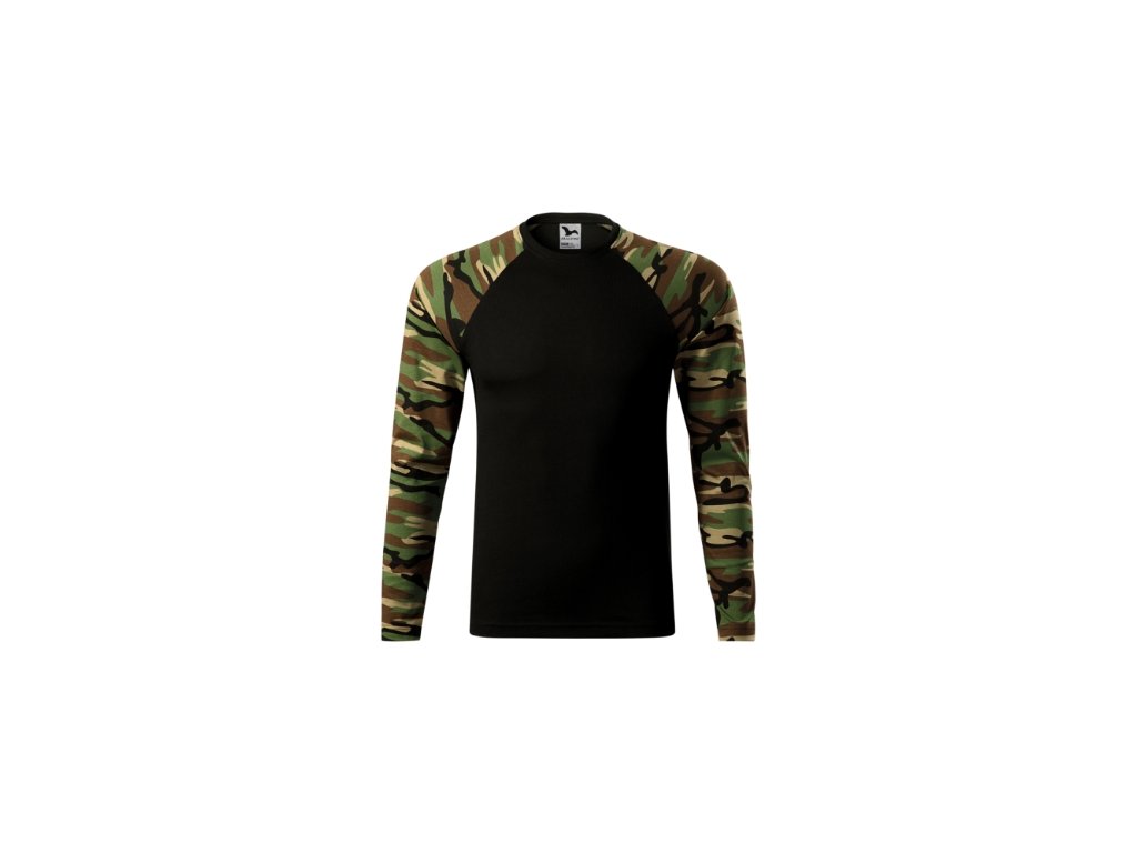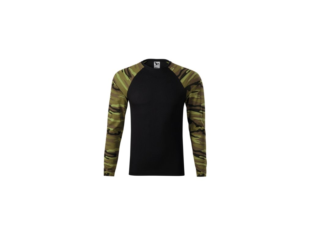 strih s bočnými švami, úzky lem priekrčníka z rebrového úpletu 1:1 s 5 % elastanu, vnútorná časť priekrčníka začistená páskou vo farbe 01, dlhé raglánové rukávy vo farbe camouflageDodatočné parametre