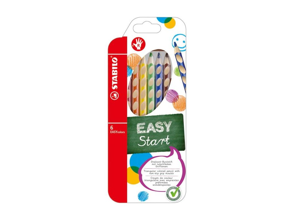 Prvá ergonomicky tvarovateľná farebná ceruzka vyrobená osobitne pre pravákov. Trojhranný dizajn a protišmykové plochy pre uvolnené držanie. Priemer tuhy 4,2 mm. Dodávaná v sade 6 ks.