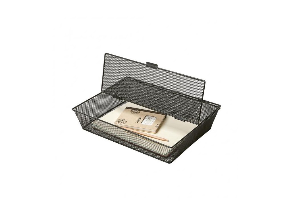 Priečinok na dokumenty a časopisy s vekom z kovovej sieťoviny potiahnutej lakom. Formát A4. Rozmery (š × v × h) 390 × 300 × 85 mm. Farba čirna.Dodatočné parametre