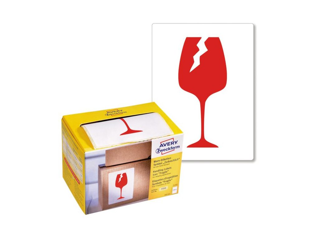 Etikety Avery s varovným symbolom ’ Krehké’ 74x100mm na kotúči