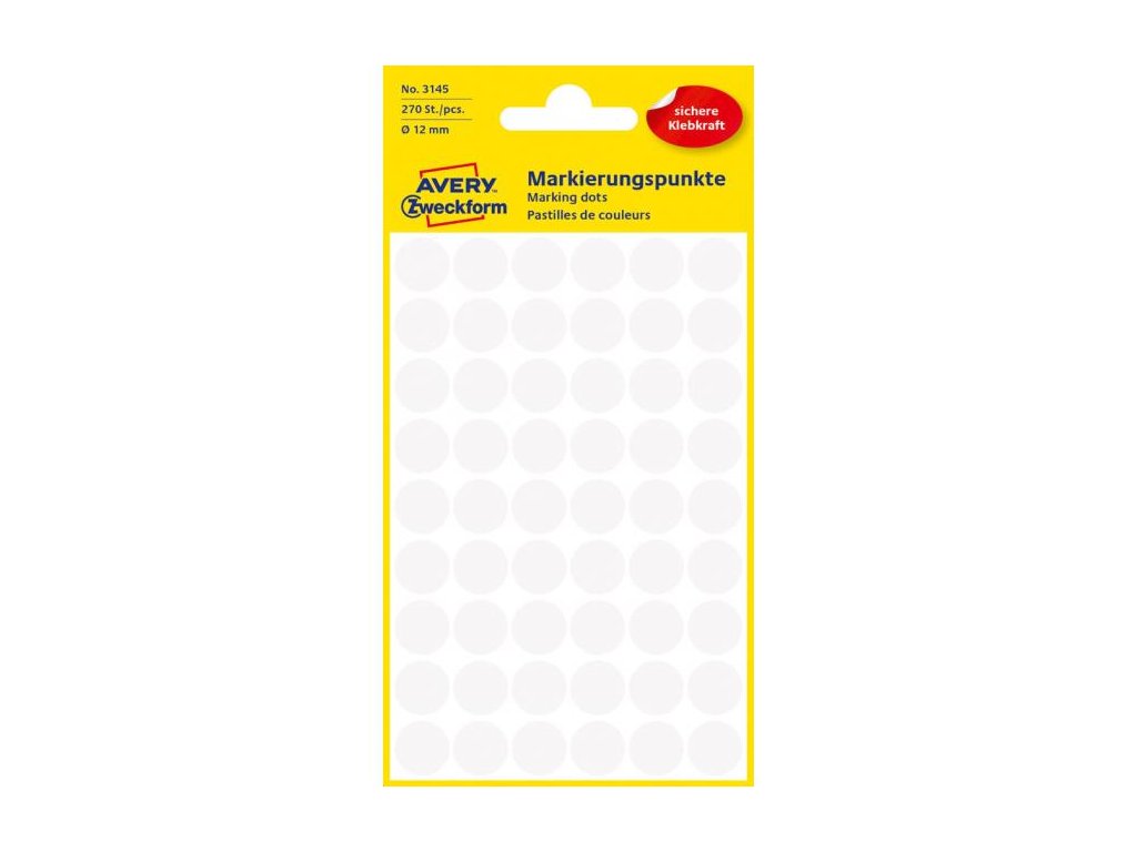 Kruhové etikety na ručný popis. Priemer 12 mm, v balení 270 etikiet. Farba biela.Dodatočné parametre