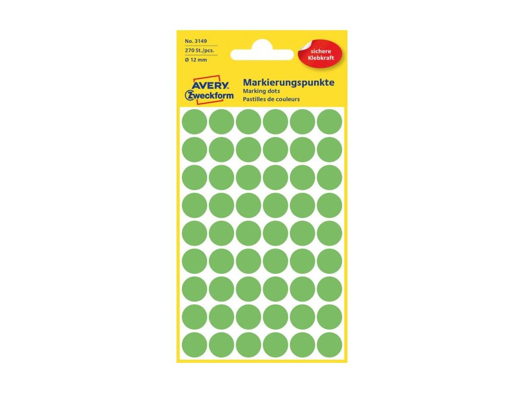 Etikety kruhové 12mm Avery neónovo zelené