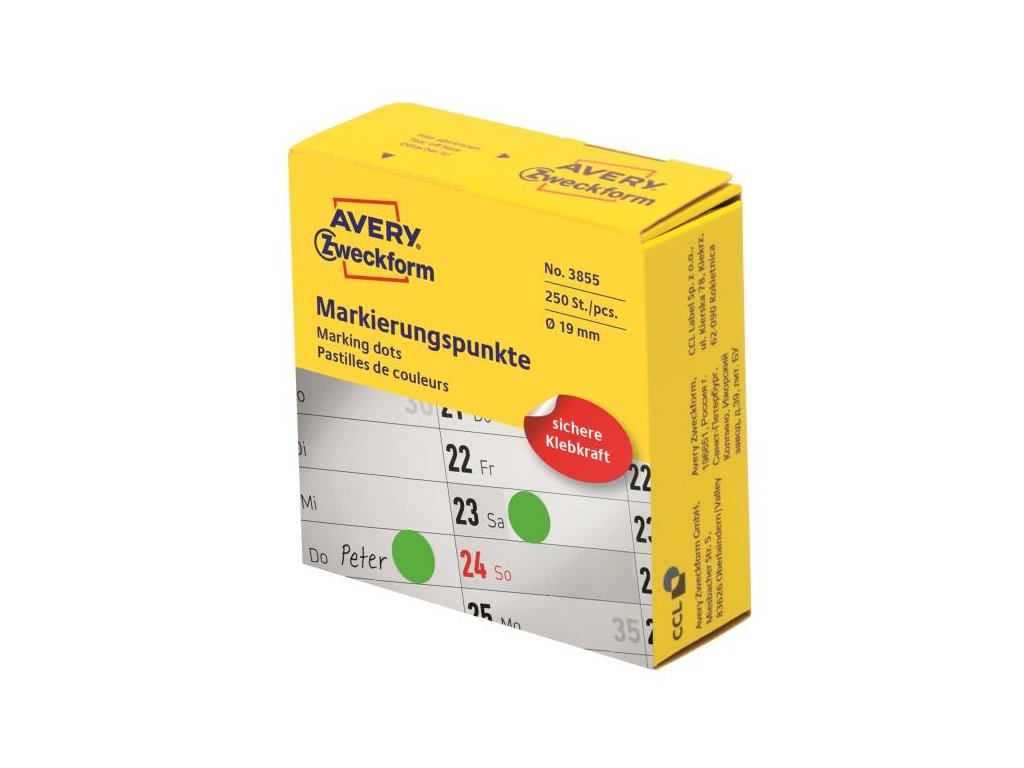 Etikety kruhové 19mm Avery zelené v dispenzore