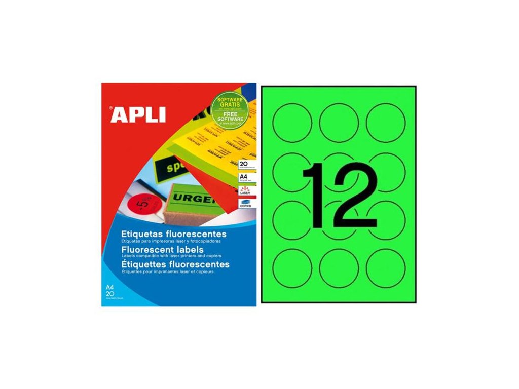 Etikety kruhové farebné priemer 60 mm APLI A4 20 hárkov fluo zelené