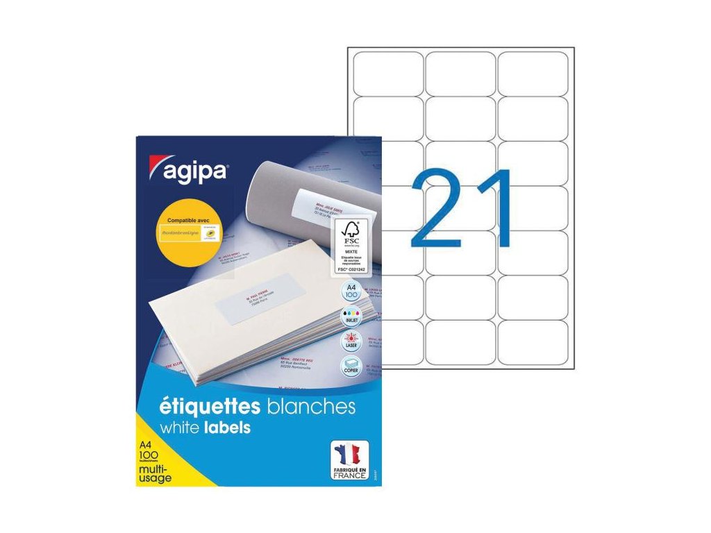 Etikety univerzálne 63,5x38,1mm Agipa A4 100 hárkov