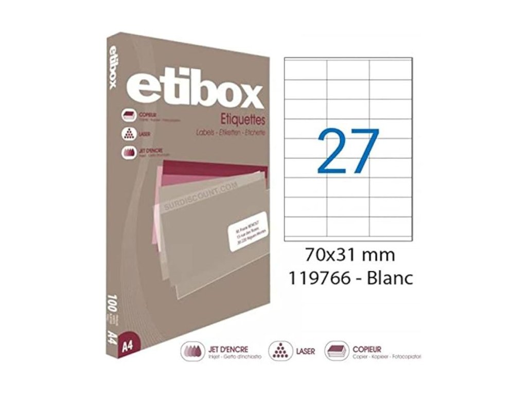 Etikety univerzálne 70x31mm Etibox A4 100 hárkov