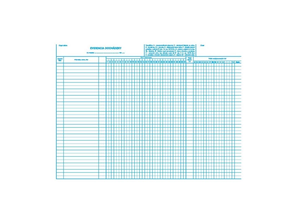 Evidencia dochádzky, A3, list