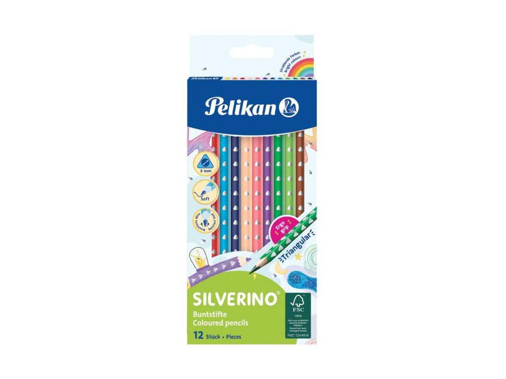 Farbičky Pelikan Silverino trojhranné tenké, sada 12 ks
