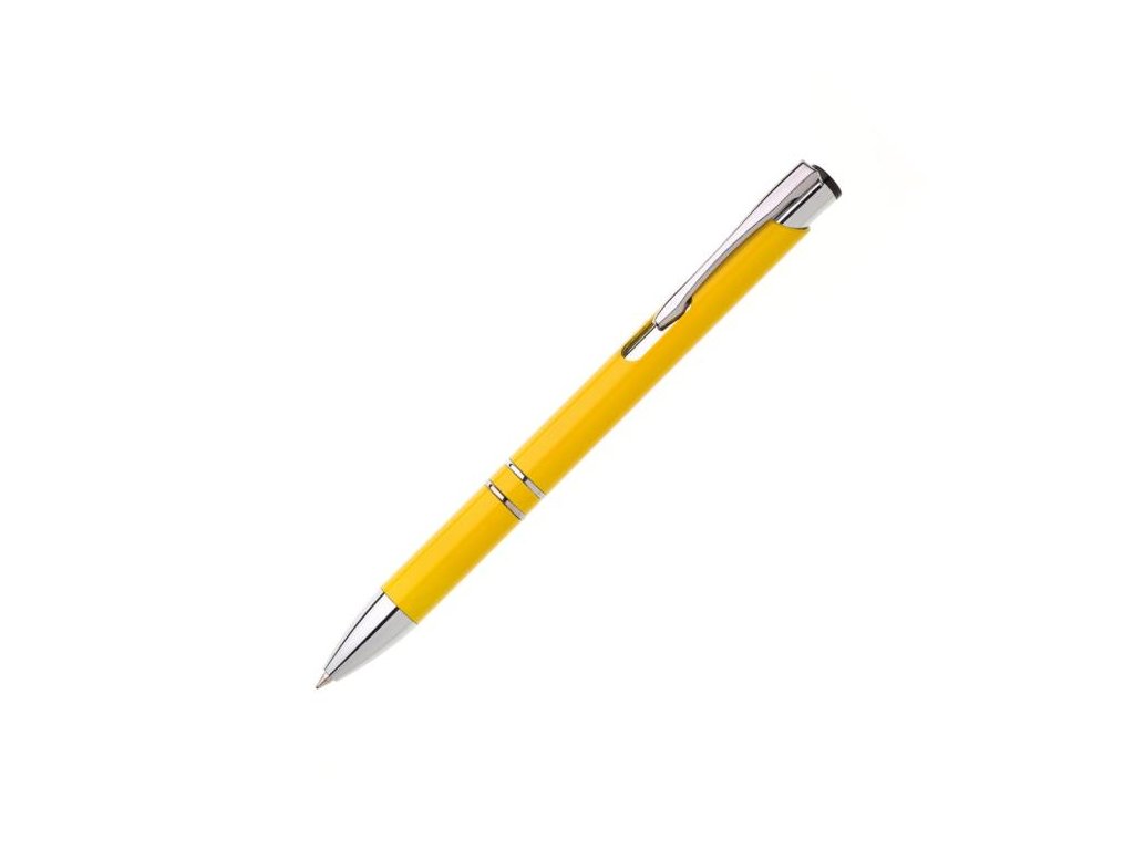 Plastové guľôčkové pero OIRA s kovovými doplnkami. Modrá náplň veľkoobjemová. Farba žltá.Dodatočné parametre