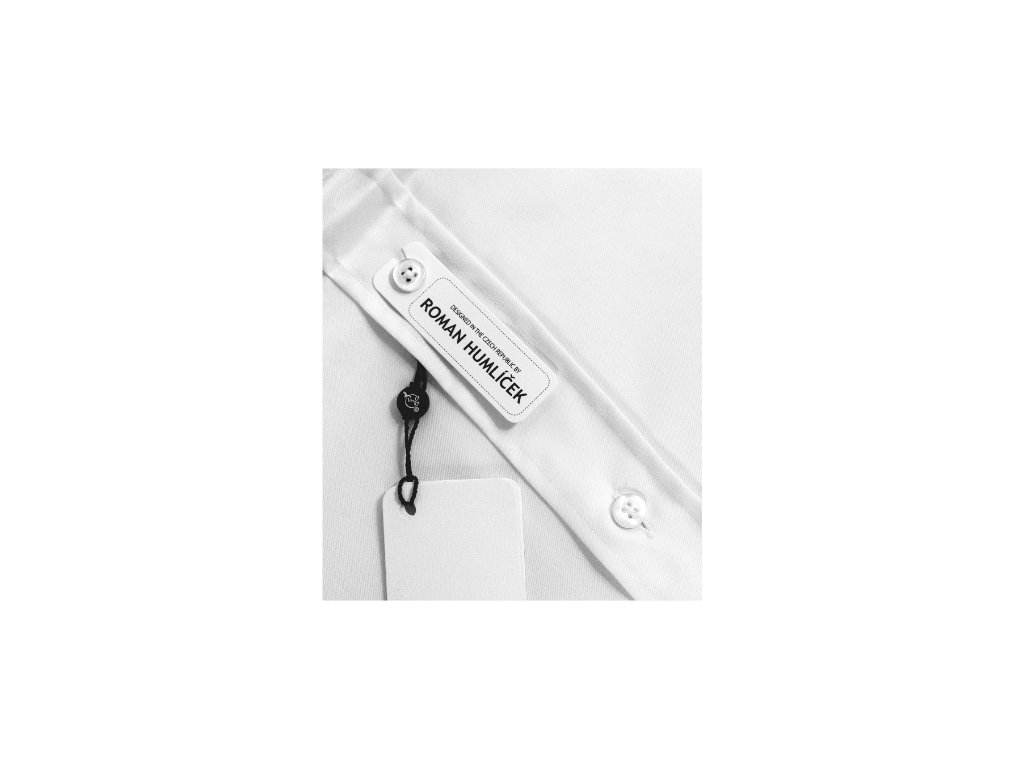 navrhnuté popredným českým krajčírom Romanom Humlíčkom, priadza z extra dlhých vlákien, zúžený strih s bočnými švami, dvojté sedlo a zášivky na zadnom diele, pásove záševky na prednom dieli, dvojdielny košeľový golier, predné kraje začistené légou, dlhé rukávy s guľatou manžetou na 2 gombíčky, perleťové gombíčky vo farbe 00 (2 náhradné navyše), tvarovaný dolný okrajDodatočné parametre