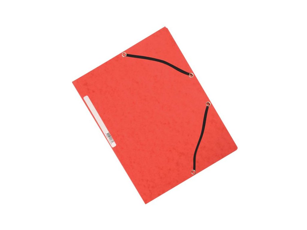 Obal s tromi chlopňami a gumičkou z kvalitného hladkého kartónu gramáže 375 g. Chrbtový štítok, kapacita 200 listov. Farba červená.Certifikát FSC.