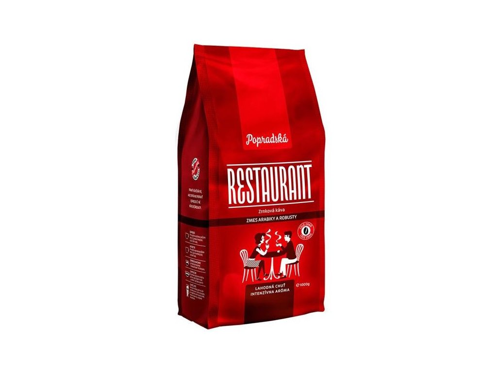 Pražená zrnková káva Restaurant je tvorená zmesou káv Arabica a Robusta, špeciálne pražených na prípravu kávy v profesionálnych kávovaroch. Hmotnosť 1 kg.Zloženie: zmes praženej zrnkovej kávy Arabiky a Robusty.Podmienky skladovania: 10-25 °C, max. vlhkosť 70%. Návod na použitie: Odporúčané dávkovanie 7g na šálku. Pôvod Slovensko. Výrobca: Baliarne obchodu, a.s. Poprad, Hraničná 664/16, 058 08 Poprad.