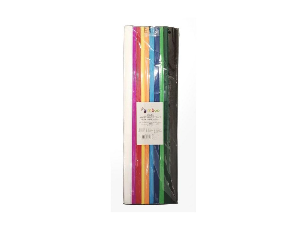 Krepový papier Gimboo v rolke rozmerov 50 x 200 cm. Balené v sáčku po 10 ks pastelových alebo klasických farieb.Dodatočné parametre