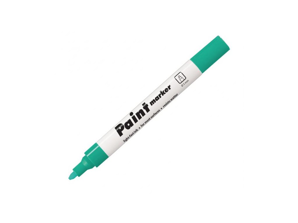 Lakový popisovač vhodný na neporézne povrchy. Svetlostály atrament po zaschnutí odolá vode, poveternostným vplyvom aj oderu. Hrot zrezaný, šírka stopy 1 - 5 mm. Väčšie balenie 10 ks v jednej farbe. Farba zelená.Dodatočné parametre