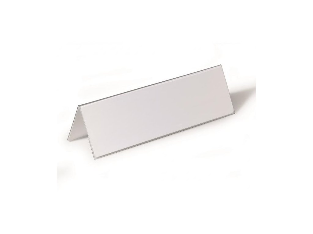 Obojstranne čitateľná stolová menovka z pevného PVC, vhodná na konferencie, recepčné pulty, ceny tovarov a popis produktov. Dodávaná s vymeniteľnou prázdnou kartou. Väčšie balenie 25 ks.Rozmery: 105x297 mm