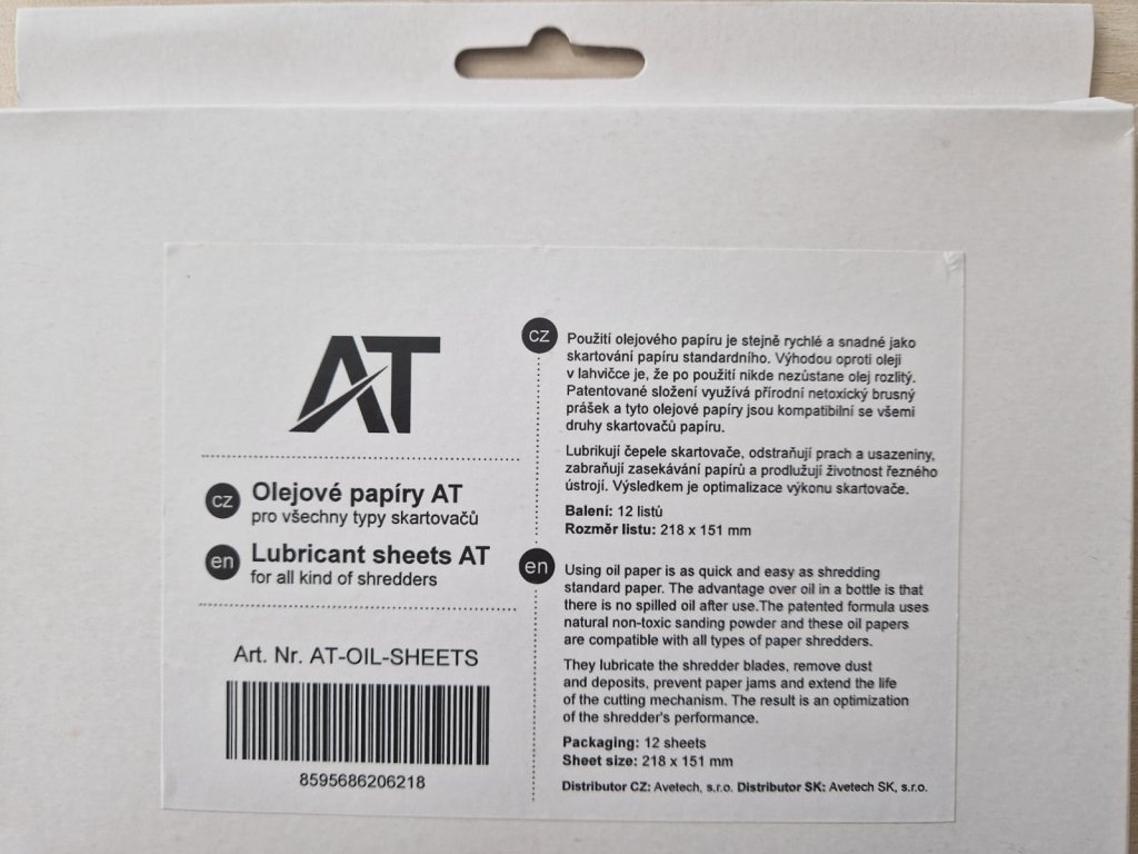 Olejové papiere AT pre skartovacie stroje