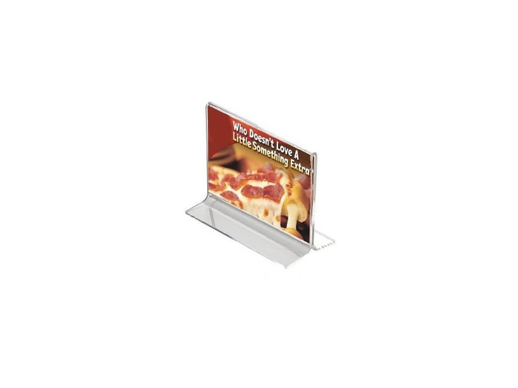 Plexi stojanček na stôl obojstranný typu T - veľkosť A4 na šírku