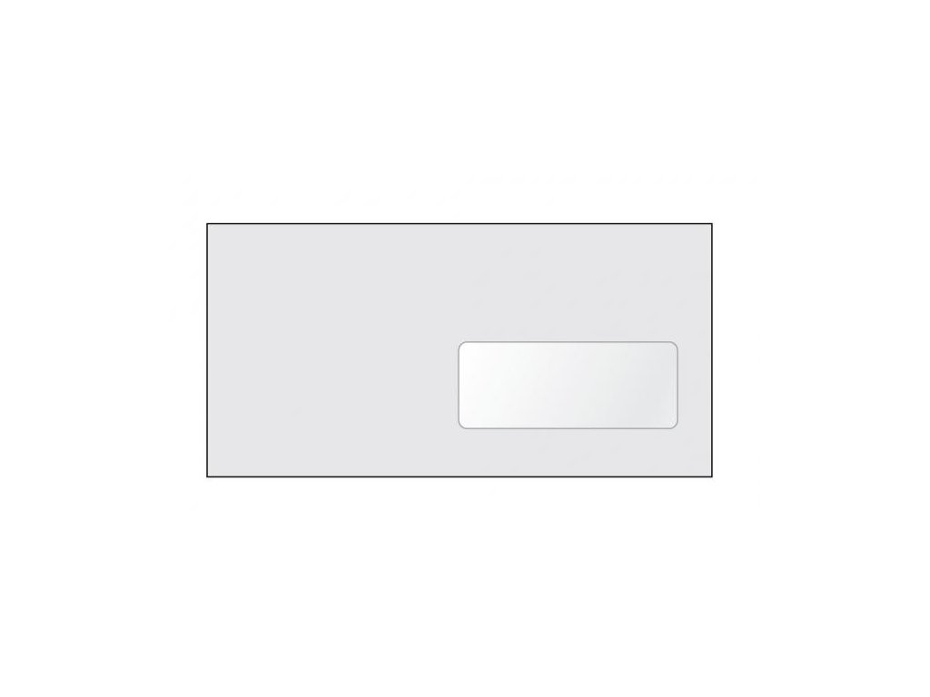 Biele obálky rozmeru 110 × 220 mm, vyrobené z bezdrevného papiera, 80 g/ m2. Samolepiace s okienkom z priehľadnej fólie vpravo.Formát: DL