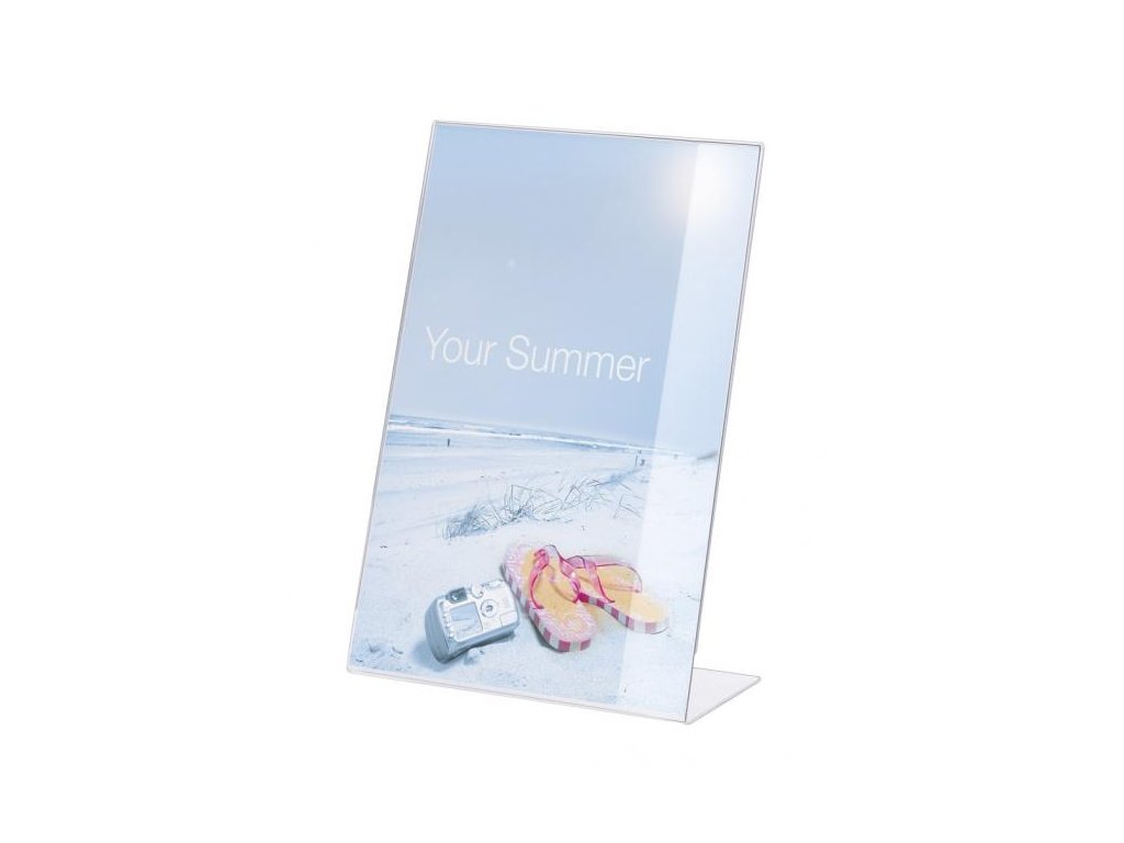 Stojan vhodný na prezentáciu ľubovoľných informácií. Vyrobený z kvalitného číreho akrylu. Samolepiace gumové podložky zabezpečujú dobrú stabilitu. Formát A4.Vybavenie: gumové podložky