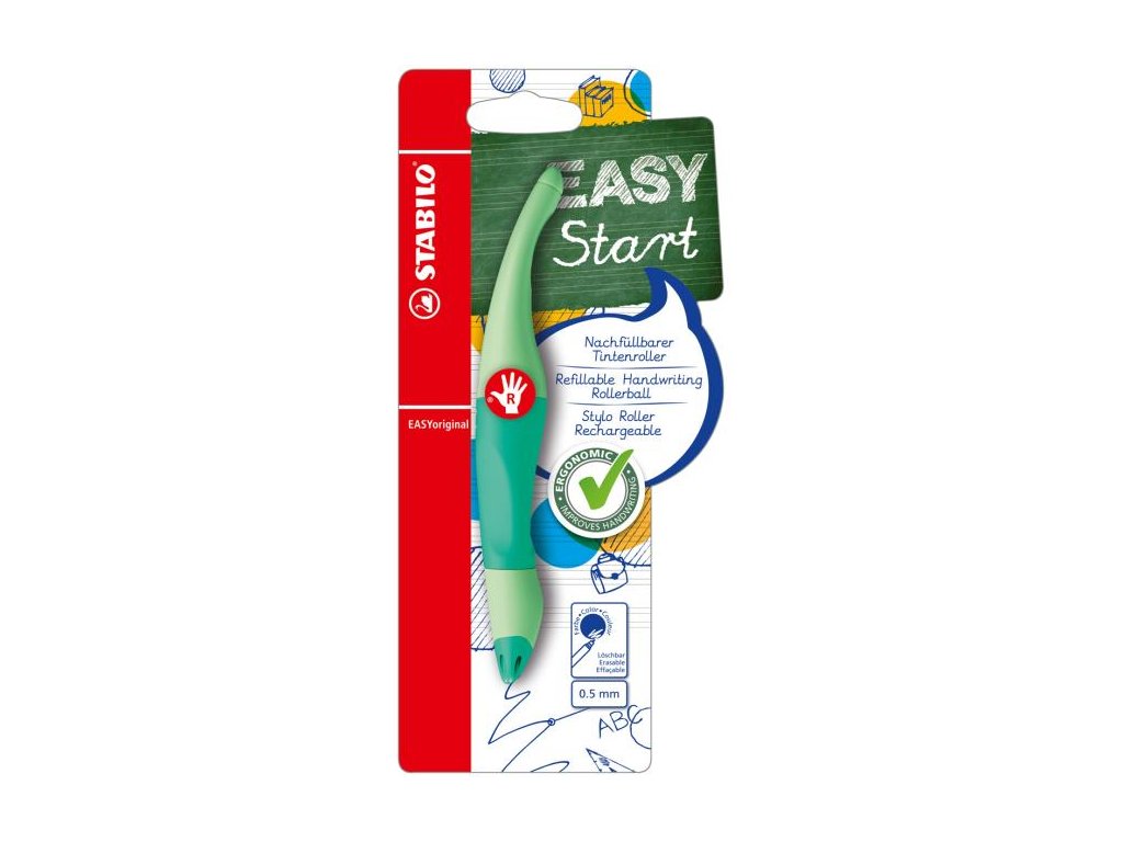 Ergonomicky tvarovaný roller, ktorý píše ako plniace pero. Prevedenie pre ľavákov. Vhodný pre deti, ktoré sa učia písať a školákov od 6 rokov. Uvoľnené držanie pomáha proti únave svalstva ruky a bolestiam pri písaní. Úchyt z nekĺzavého materiálu, nový hrot s každou novou náplňou. Plnený zmizíkovateľným atramentom modrej farby.