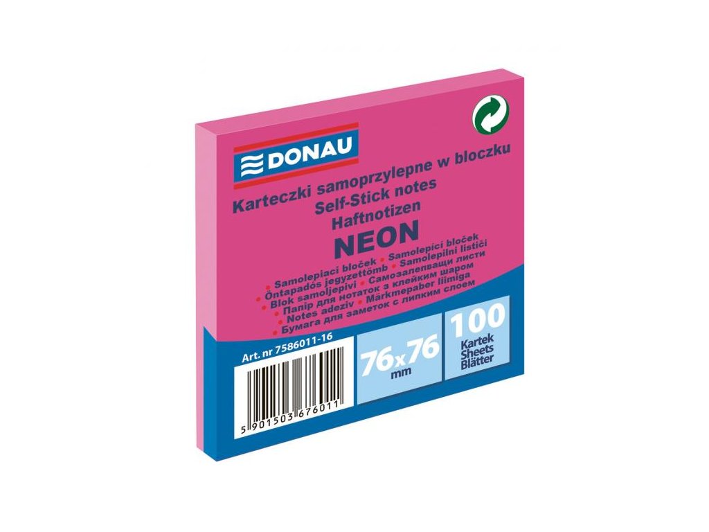 Samolepiaci bloček Donau neónový, 76 x 76 mm, ružový, 100 lístkov
