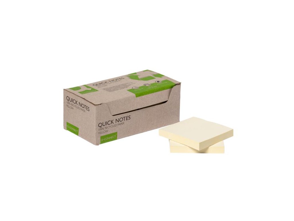 Samolepiace poznámkové bločky zo 100% recyklovaného papiera gramáže 70 g / m². V balení 12 ks v žltej farbe. Rozmery 76 x 76 mm.Dodatočné parametre