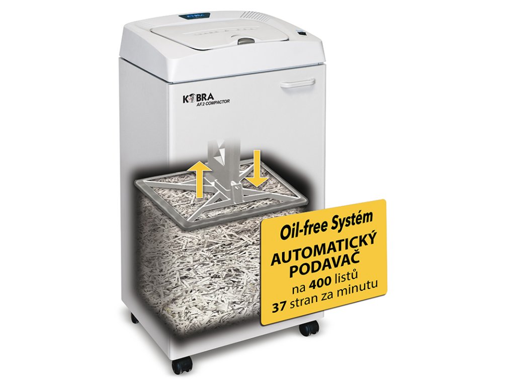 Skartovačka Kobra AF.2 COMPACTOR je najinovatívnejšia a najrýchlejšia automatická skartovačka dostupná na svetovom trhu. Špeciálny systém kompresie papiera optimalizuje kapacitu vakov a zabraňuje nutnosti ich často vysypávať, pretože štyrikrát zväčšuje kapacitu odpadovej nádoby. Rýchlosť skartácie umožňuje rýchlu skartáciu dokumentov bez asistencie. Kobra AF.2 je vybavená veľkým zásobníkom papiera až na 400 listov a samostatným vstupom pre ručné skartovanie. Je vybavená špeciálnym bezolejovým systémom, motorom s nepretržitou prevádzkou bez prehrievania, robustnou reťazou a kovovým prevodovým systémom pohonu pre najvyššiu odolnosť a spoľahlivosť. Patentovaný systém Energy Smart prepne stroj do úsporného pohotovostného režimu už po 12 sekundách nečinnosti. Voliteľne je k dispozícii štvormiestny elektronický kombinačný zámok, ktorý počas skartácie chráni informácie na dokumentoch pred zrakmi nepovolaných osôb. https://www.youtube.com/watch?v=NdYZEUlQFxABuďte prvý, kto napíše príspevok k tejto položke.