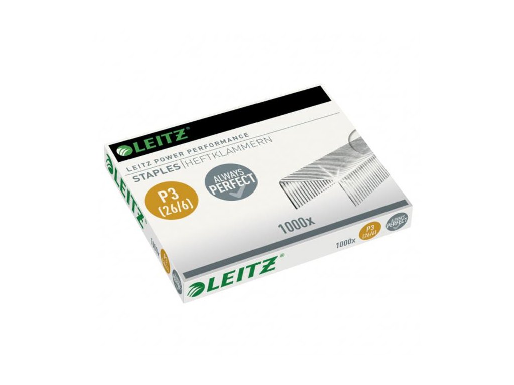 Spinky Leitz Power Performance P3. Kvalitné oceľové spinky 26/6. K zošitiu až 30 listov (80 g/m2). Dĺžka nožičky spinky 6 mm. Krabička obsahuje 1000 spiniek.Najoptimálnejší výkon pri použití v Leitz zošívačkách. Prémiová kvalita, odporúčané aj do všetkých značkových zošívačiek.