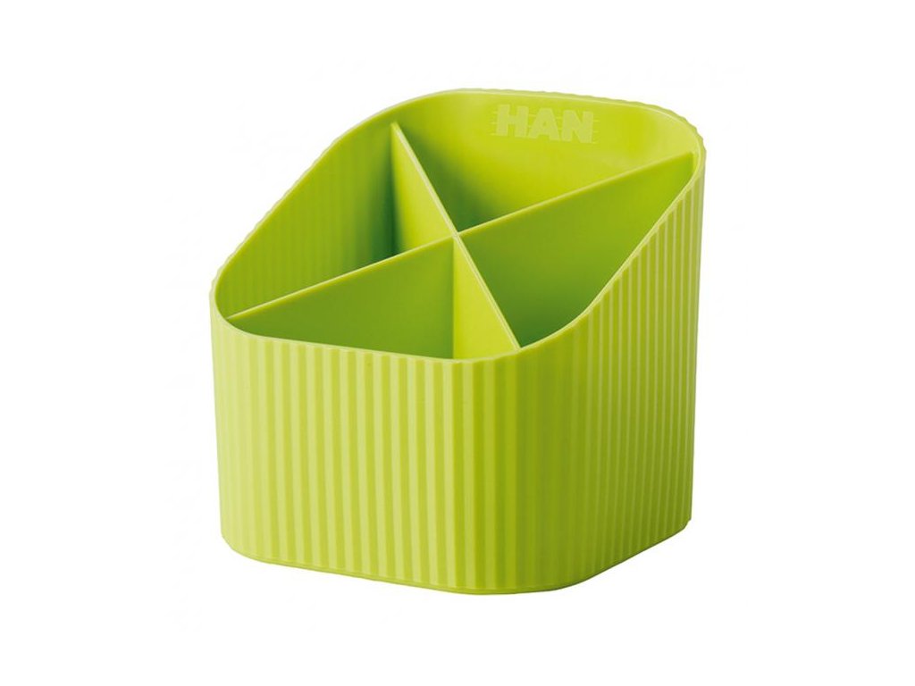 Stojan so 4 priehradkami v modernom dizajne a trendových farbách. Materiál vysokokvalitný PP. Rozmery 111 × 121 × 106 mm. Farba zelená.Dodatočné parametre