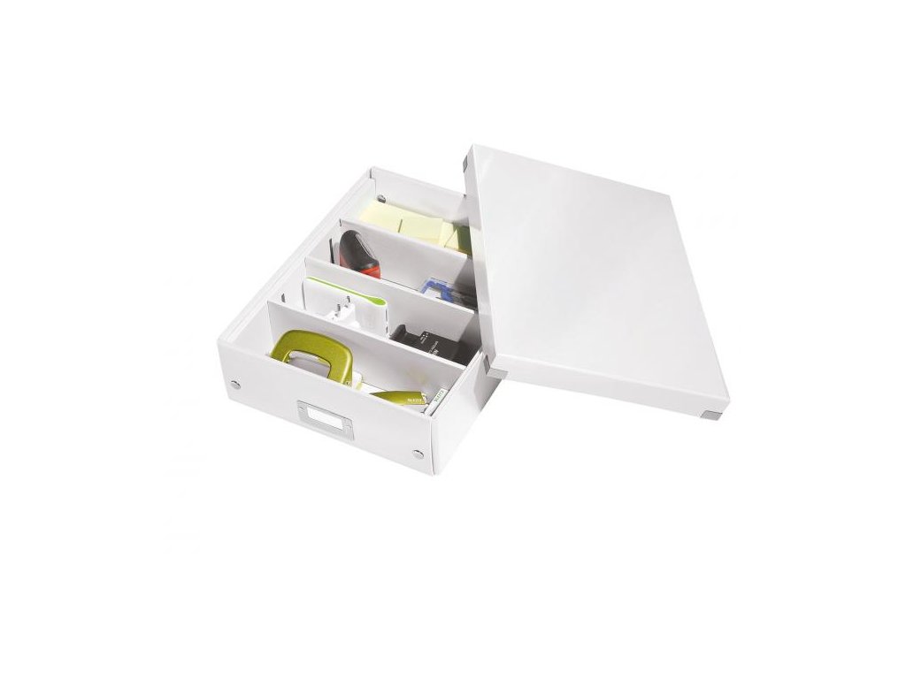 Archivačná krabica s vekom vo výrazných farbách WOW. Pevné a stabilné prevedenie. Materiál silný drevnatý kartón potiahnutý laminom. Rámik na štítok, vystužené rohy krabice a spojovacie cvoky vyrobené z kovu. Inteligentná skladacia konštrukcia - rýchle a jednoduché zloženie bez nutnosti použitia skrutiek a opätovné rozloženie, keď krabice práve nepoužívate. Dodávané rozložené. Väčšie balenie 6 ks. Krabica na usporiadanie káblov, nabíjačiek, slúchadiel, fotografi í a ďalších drobností. Na vylepšenie usporiadania obsahu slúži vnútorný systém priehradiek, s ktorým môžete rozdeliť krabicu na 2 alebo 3 časti a zabrániť tak miešaniu obsahov v jednotlivých častiach. Veľkosť M. Robustné kovové úchyty na jednoduchý prenos. Rozmery 280 × 100 × 370 mm.Dodatočné parametre