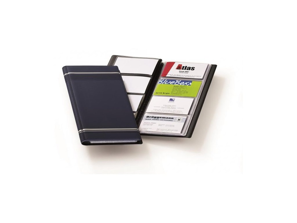 Vizitkár prenosný na 96 vizitiek VISIFIX s prúžkami tmavomodrý