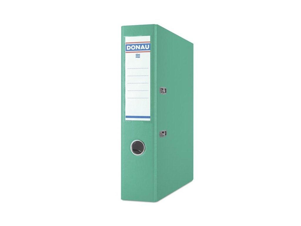 Zakladač formátu A4 s kvalitnou pákovou mechanikou, vyrobený z 2,1 mm hrubého kartónu s gramážou 1290 g/m². Potiahnutý ekologickou polypropylénovou fóliou (100 mic.) s textúrou podobnou plátnu. Vnútorná papierová podšívka. Vybavený chrbtovým krúžkom, vreckom s vymeniteľným chrbtovým štítkom a uzatváracím mechanizmom. Väčšie balenie 25 ks.Farba: tyrkysová