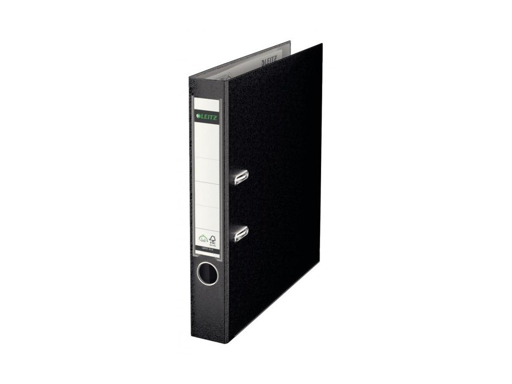 Patentovaný pákový celoplastový zakladač formátu A4 vyrobený z kvalitného kartónu. Vonkajšia strana potiahnutá farebnou polypropylénovou fóliou, vnútorná svetlosivou fóliou. Zakladač je vybavený vysokokvalitnou mechanikou Leitz, chrbtovým krúžkom, kovovou lištou a vymeniteľným papierovým štítkom na popis. Vysokokvalitná mechanika umožňuje o 50 % širšie otvorenie zakladača než dovoľuje bežná páková mechanika, čo znamená až 20 % úspory času pri manipulácii a archivácii dokumentov. Šírka chrbta 5,2 cm. Väčšie balenie 10 ks. Farba čierna.Dodatočné parametre