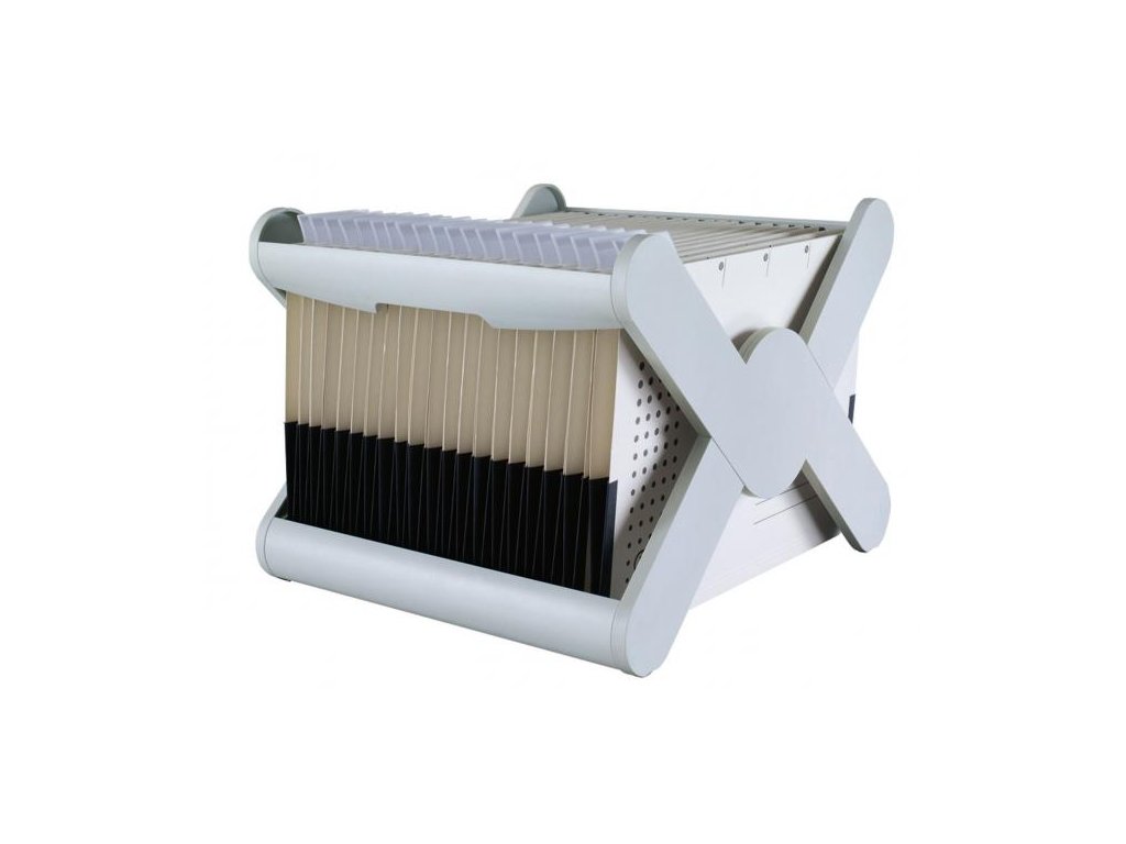 Zásobník redukovaného tvaru, ale so zachovaním plnej funkcionality. Stohovateľný, veľmi kompaktný, vhodný na závesné obaly A4 s ľahkým prístupom k používaným súborom. Kapacita uchovávania až 35 závesných obalov typu V. Rozmery (š × v × h) 359 × 269 × 320 mm. Farba sivá.Dodatočné parametre